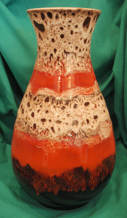 The BMP Apollo Series from the late 1970s consisted of nine different mold shapes. Each piece was unique and consisted of a variation of heavy applied glaze, reminiscent of West Germany’s Fat Lava glazes. The Apollo line has heavy white, orange and brown glazes.