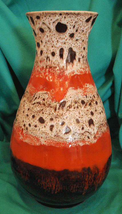The BMP Apollo Series from the late 1970s consisted of nine different mold shapes. Each piece was unique and consisted of a variation of heavy applied glaze, reminiscent of West Germany’s Fat Lava glazes. The Apollo line has heavy white, orange and brown glazes.