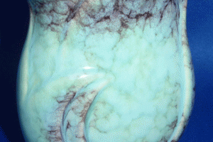 - Bright red to mottled grey glaze