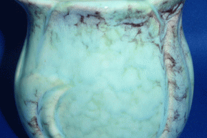 - Mottled brown to light green high gloss glaze