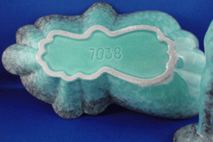 - Mottled turquoise glaze with incised design