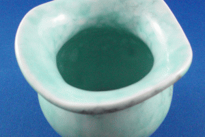 - Pale turquoise to pale pink mottled glaze