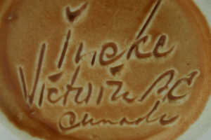 - Cobalt blue glaze, script underglaze: Inéke Victoria BC Canada – 1991- [from CDR]