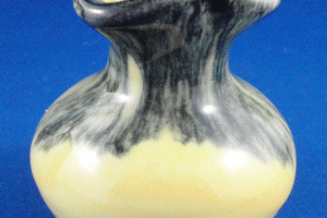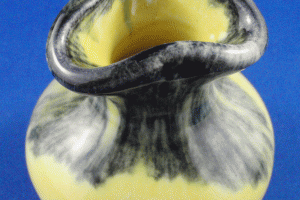 Vases range in size from tiny to medium size (5″ tall), and can be found in most of the typical glaze colours. They may have a smooth rim or a ruffled rim.