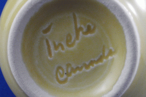 - Yellow with caramel glaze, square stamp: ‘Handmade by Inéke, Victoria, BC Canada’ – 2000 [from CDR]