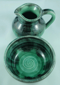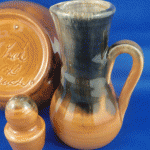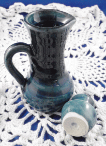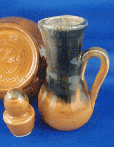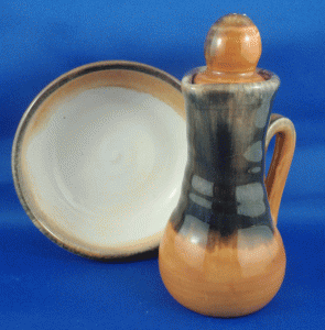 - 6c. Ineke ‘Autumn’ cruet jug with dipping bowl [bowl – high-gloss clear glaze interior]