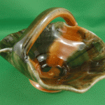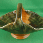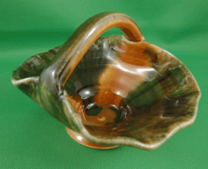 - 8a. Ineke carrying basket candy dish, Autumn (green drip glaze on caramel)