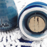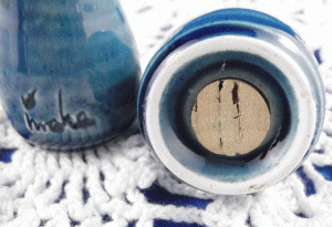 - 3c. Ineke pottery salt & pepper set, cone-shaped, blue [base, mark & cork]