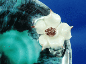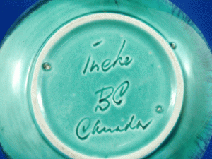 - 1c. Ineke trinket or mint dish, applied Dogwood flower [base & mark]