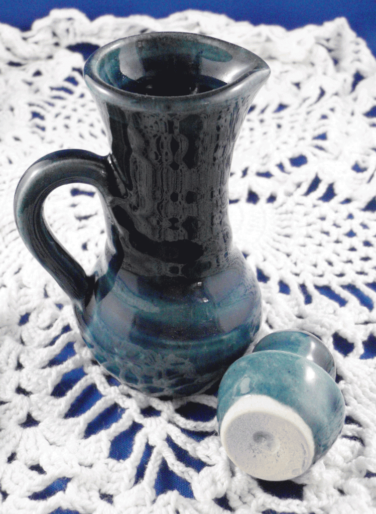 4b. Ineke handled cruet, oil or vinegar jug, cobalt blue [stopper]