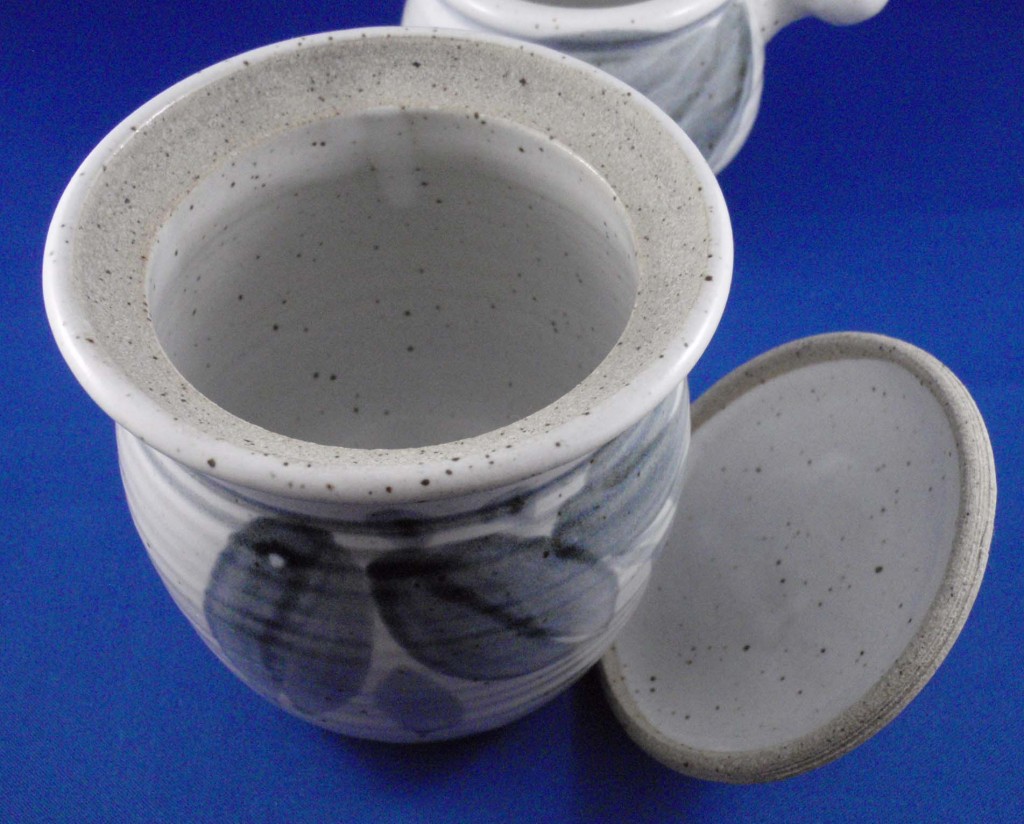 Home→Cranberry Pottery lidded sugar, Blue Leaf →Cranberry Pottery lidded sugar, Blue Leaf