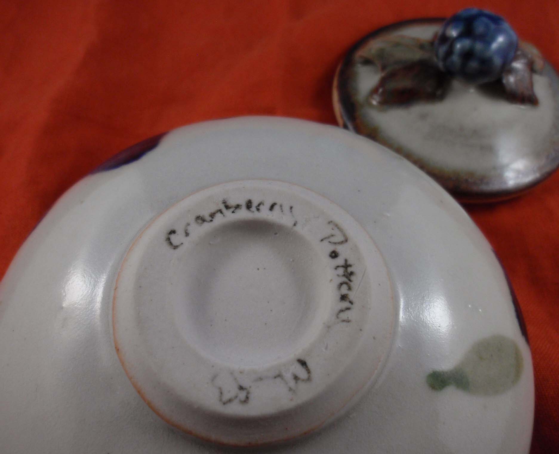 2f: Cranberry Pottery lidded bowl, Blackberry pattern [mark]