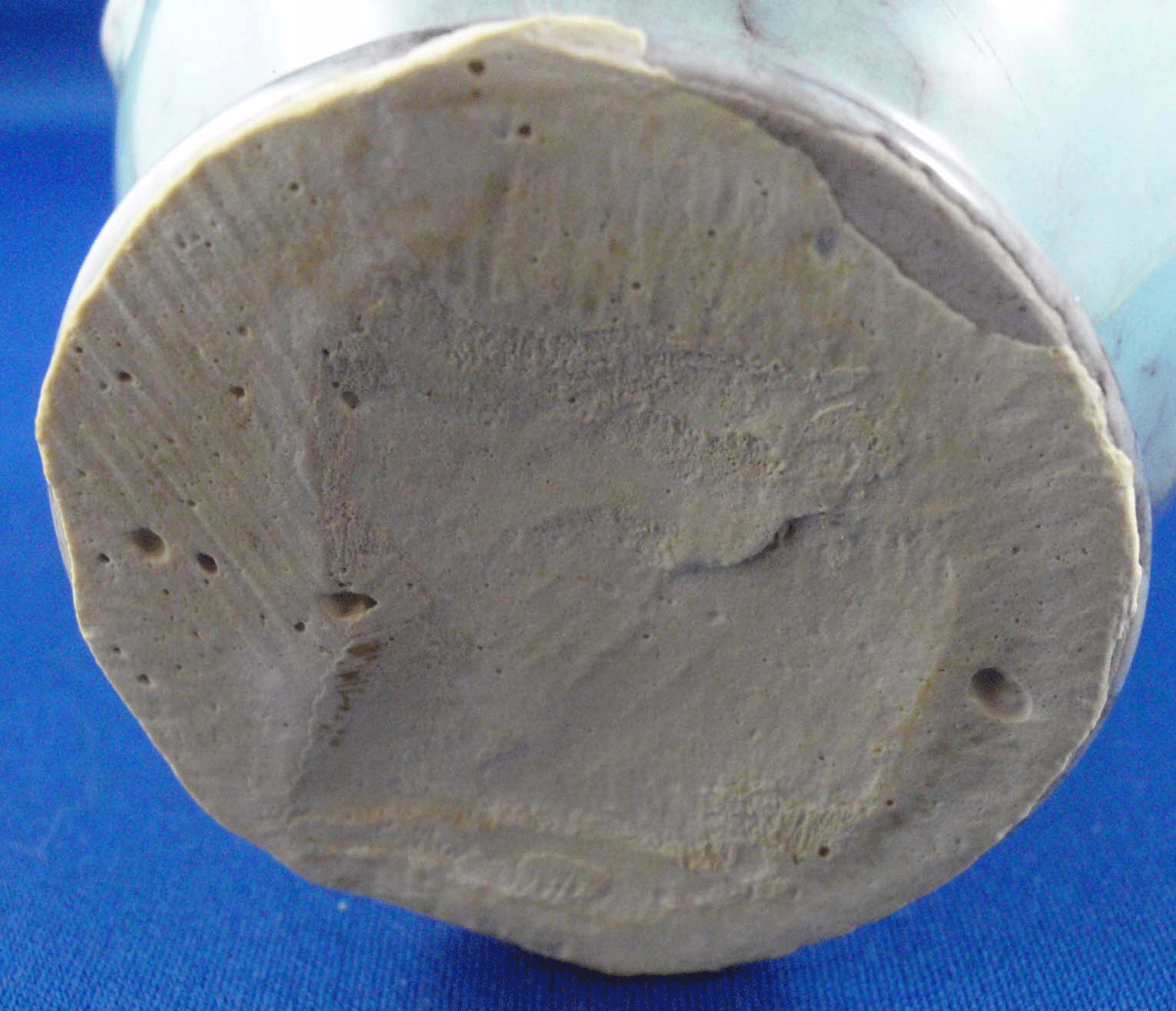Shape: Small upright oval body, random tiny circular bumps, rough non-glazed base
